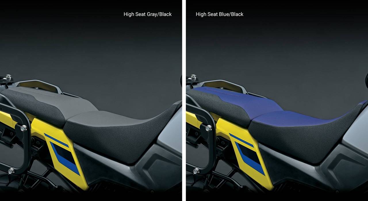 Included are Suzuki’s ADV-style, 37-liter aluminum panniers that attach to powder-coated, black finish carriers.