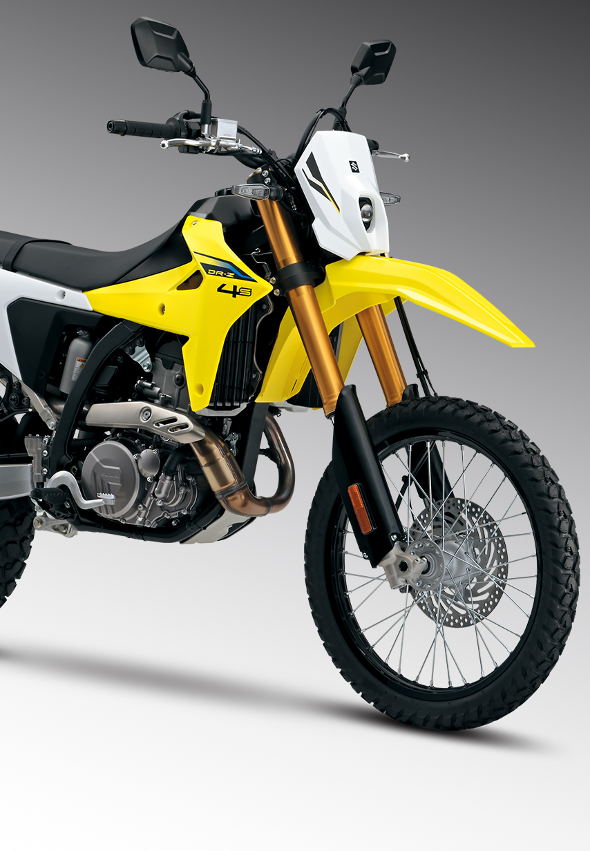 The DR-Z4S lets you enjoy the pavement or trails thanks to a tough, reliable chassis and responsive dual-purpose engine.