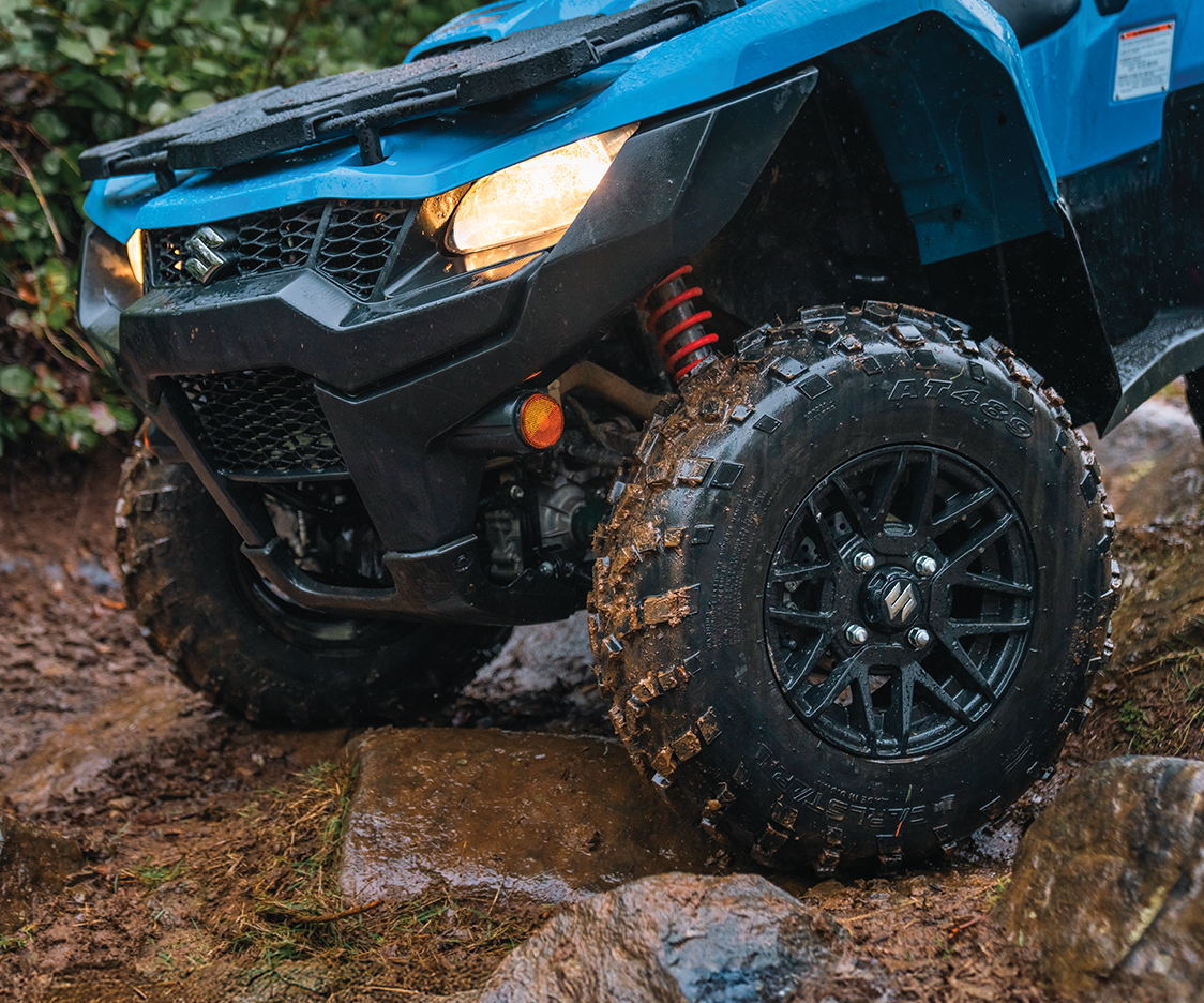 *Suzuki KingQuad ATVs may be used only by those aged 16 and older. At Suzuki, we want every ride to be safe and enjoyable. Always wear a helmet, eye protection, and protective clothing. Never ride under the influence of alcohol or other drugs. Study your owner’s manual and always inspect your Suzuki before riding. Take a riding skills course. For the nearest ATV skills course, call the SVIA at 1-800-852-5344, and we will even pay for the training. Along with concerned conservationists everywhere, Suzuki urges you to Tread Lightly!® on public and private land.