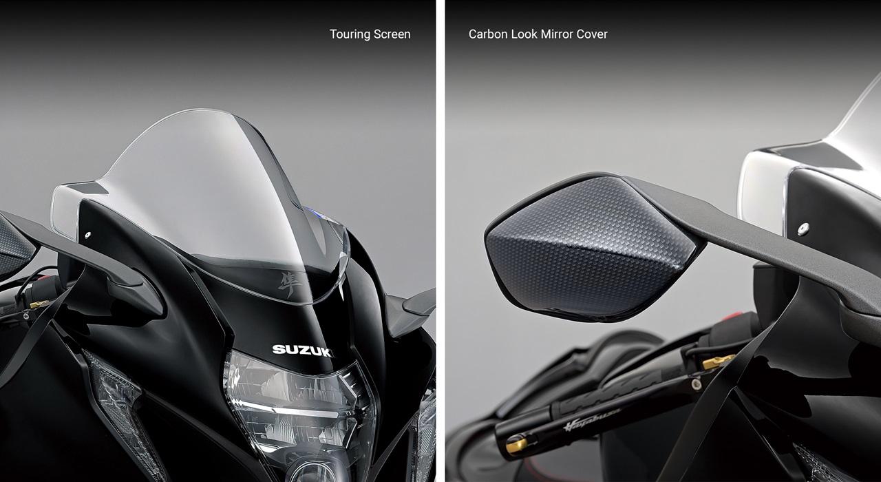 A variety of Genuine Suzuki Accessories for Hayabusa owners are available, including a wide selection of Suzuki and Hayabusa logo apparel and an accessory single seat cowl.