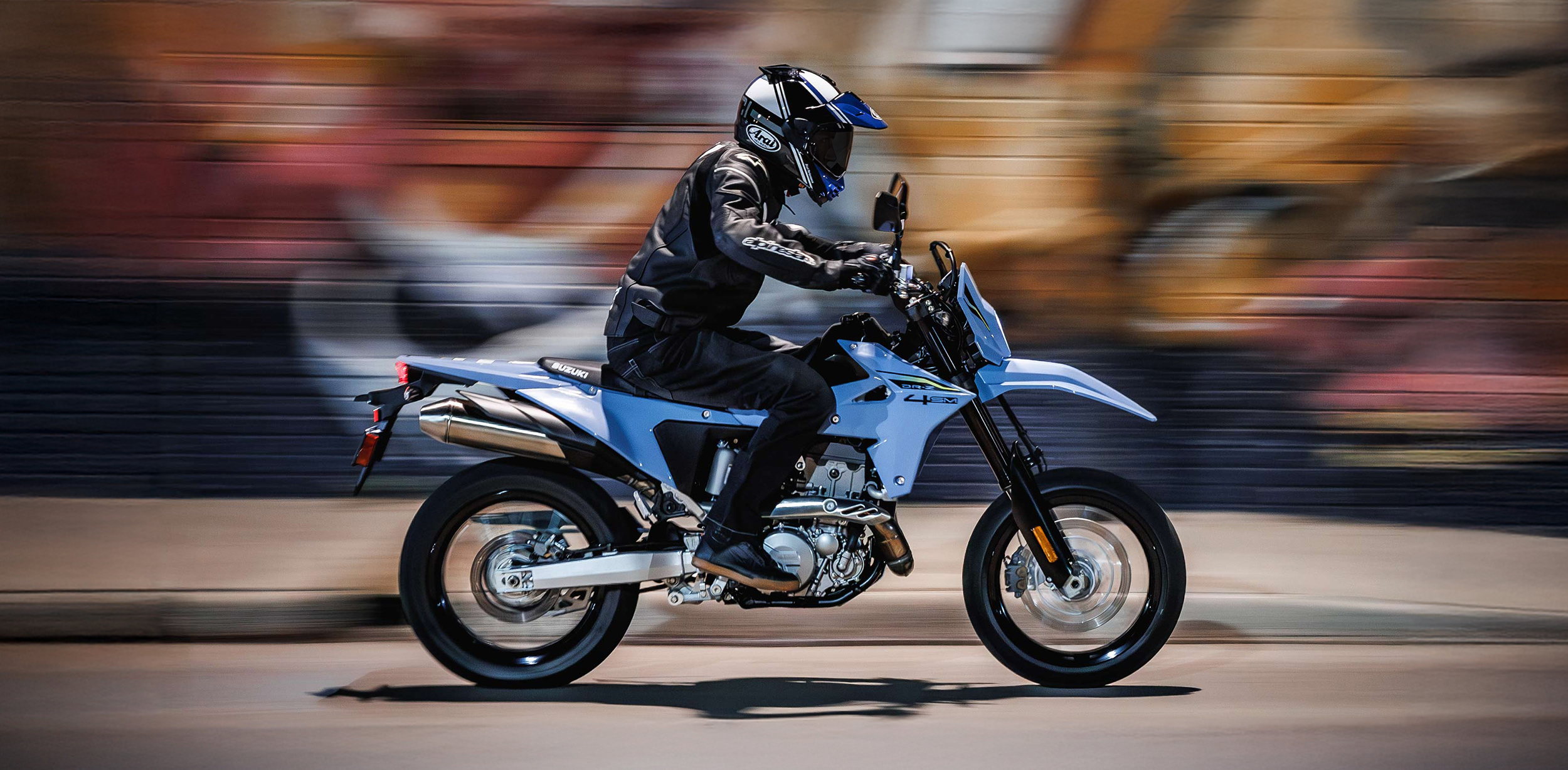 The DR-Z4S lets you enjoy the pavement or trails thanks to a tough, reliable chassis and responsive dual-purpose engine.