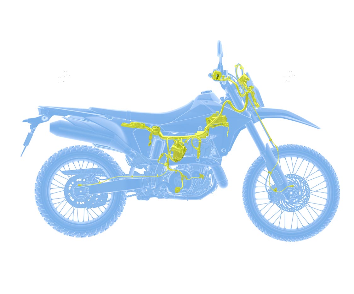 View Product BrochureNew twin-spar steel frame and aluminum sub-frame give exceptional torsional rigidity and greatly enhance the DR-Z4SM’s handling characteristics.