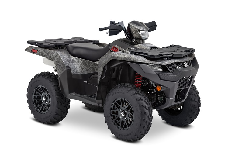 High traction 25-inch Carlisle® tires on lightweight, cast aluminum wheels have a special blacked-out finish. Suzuki's plush T-shaped seat delivers rider mobility during spirited or difficult terrain riding.